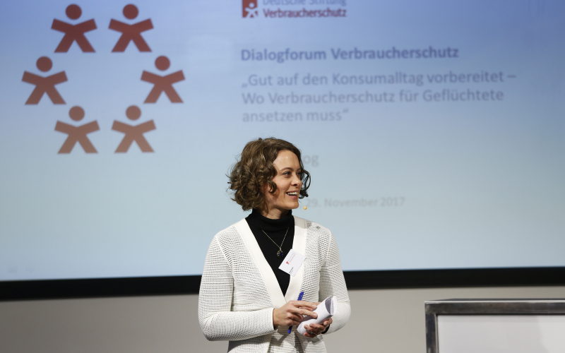 Das diesjährige Dialogforum Verbraucherbildung stellte die Frage in den Mittelpunkt, was Verbraucherschutz leisten muss und kann, damit Geflüchtete ausreichend auf den Konsumalltag vorbereitet sind. Wie können Geflüchtete beim Ankommen und Zurechtfinden in unserer Gesellschaft bestmöglich unterstützt werden? Welche Themen stehen bei der Beratung an erster Stelle? Vor welchen Herausforderungen für eine nachhaltige, bedarfsgerechte und gesellschaftlich notwendige Verbraucherbildung für Geflüchtete stehen wir? Was funktioniert bereits gut und wo fehlen Lösungen? Welche für den Verbraucherschutz relevanten Erfahrungen haben Unternehmen mit Geflüchteten gemacht? Im Austausch mit Stakeholdern aus Politik, Verbraucherschutz, Wirtschaft und Zivilgesellschaft teilten wir Wissen und Erfahrungen und diskutierten Spannungsfelder. Wir wollten gemeinsam Antworten auf die Frage finden, welchen Beitrag Verbraucherschutz für eine erfolgreiche Integration von Geflüchteten in unsere Gesellschaft leisten kann und muss.
