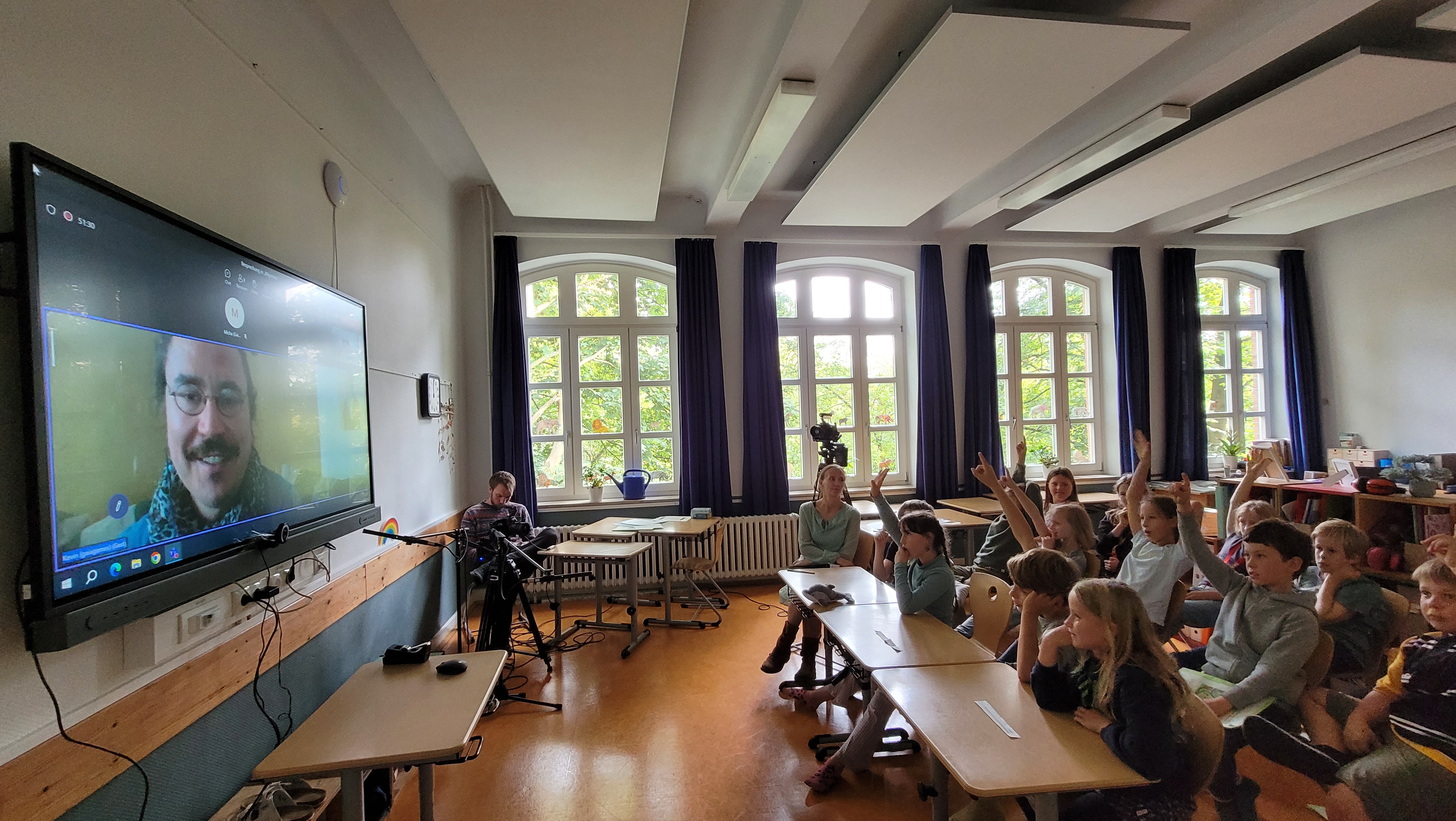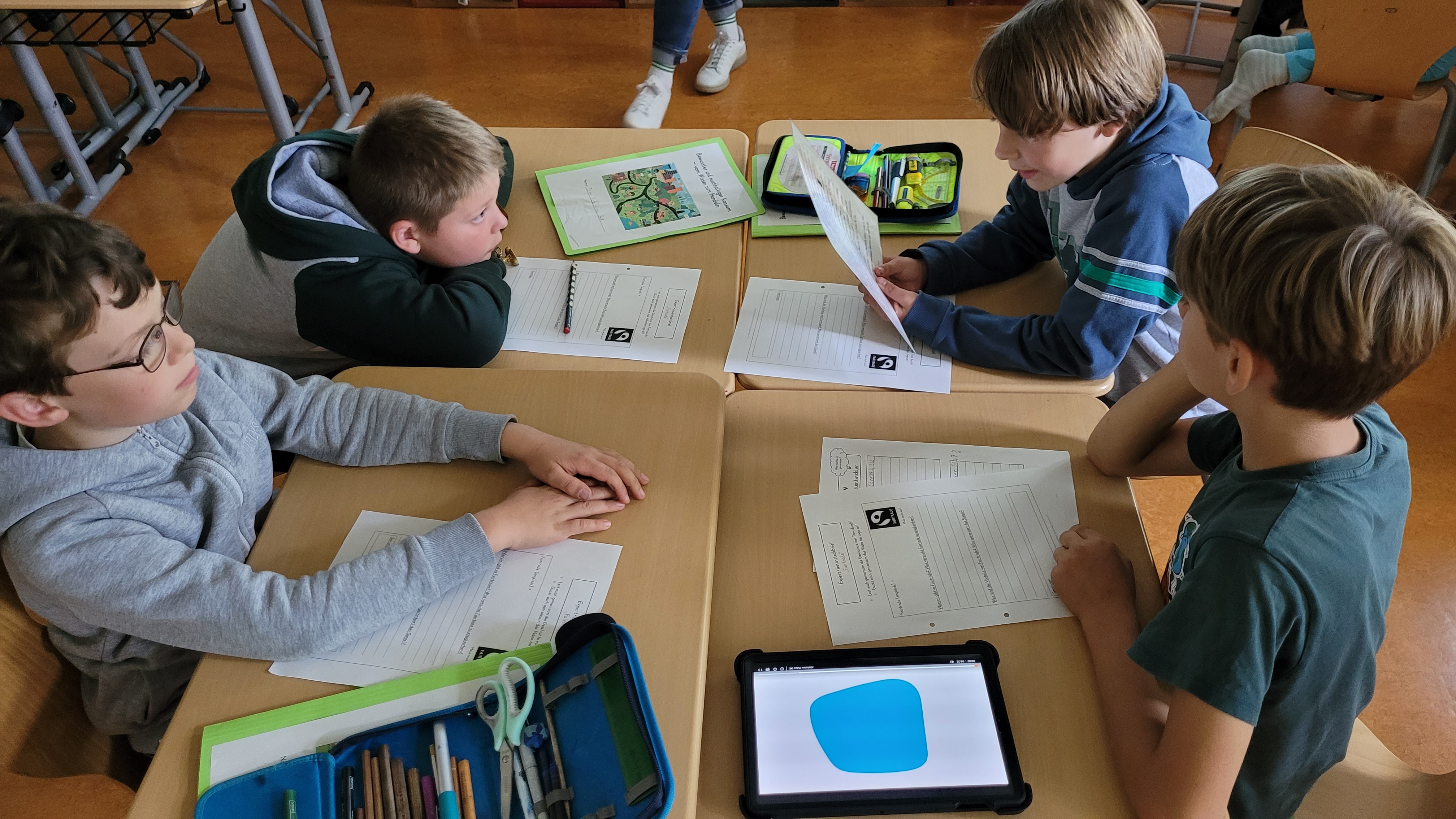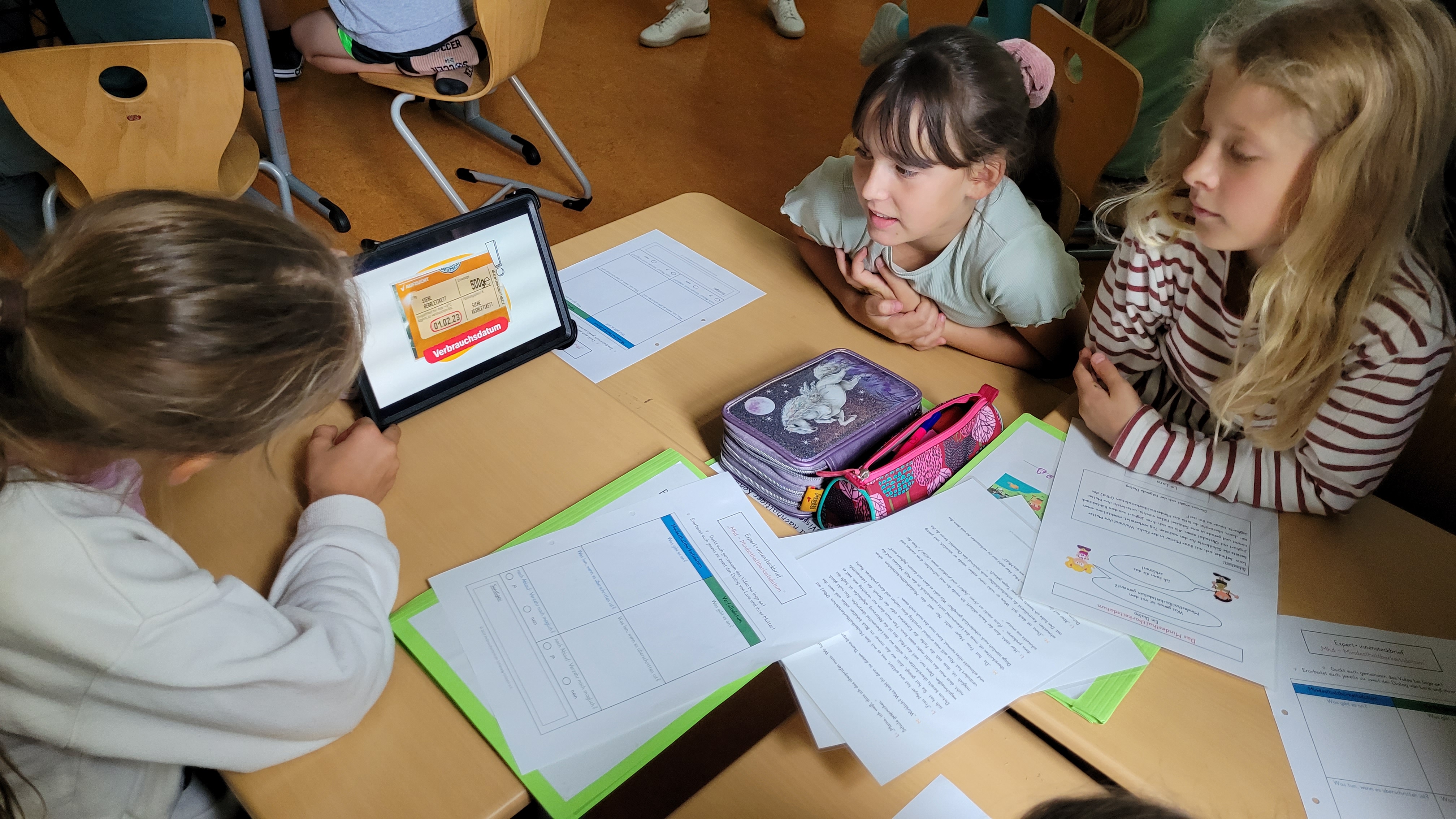 In den ersten Unterrichtsstunden der Lern-AGs haben sich die Kinder und das Projektteam kennengelernt. Gemeinsam haben sie die ersten Grundlagen u.a. zu Fairtrade, Bio-Siegeln, dem Weg der Lebensmittel und zum Mindesthaltbarkeitsdatum erkundet. Zu alledem wollen sie im Laufe des Projektes "Bewusster, nachhaltiger Konsum in der Grundschule" ein eigenes Lernspiel kreieren. Ein Highlight auf diesem Weg hat bereits stattgefunden: die Schüler:innen durften die Spieleentwickler von Gaiagames zu ihrem Job und zur Spieleentwicklung interviewen. Ganz oben auf der Frageliste: "Macht Spieleentwickeln immer Spaß?". Meistens, so hieß es. Denn Spieleentwicklung ist ein komplexes Feld, bei dem Kurzweiligkeit, Spielregeln, Lerninhalt und vieles weitere Hand in Hand gehen müssen. Mit den Antworten auf viele interessierte Fragen der Schüler:innen sind sie nun selbst gefragt, denn nun sind sie an der Reihe: Mit spannendem Input zu Nachhaltigkeit im täglichen Konsumieren verknüpfen sie Erlerntes mit allem, was es für ein gutes Spiel braucht.