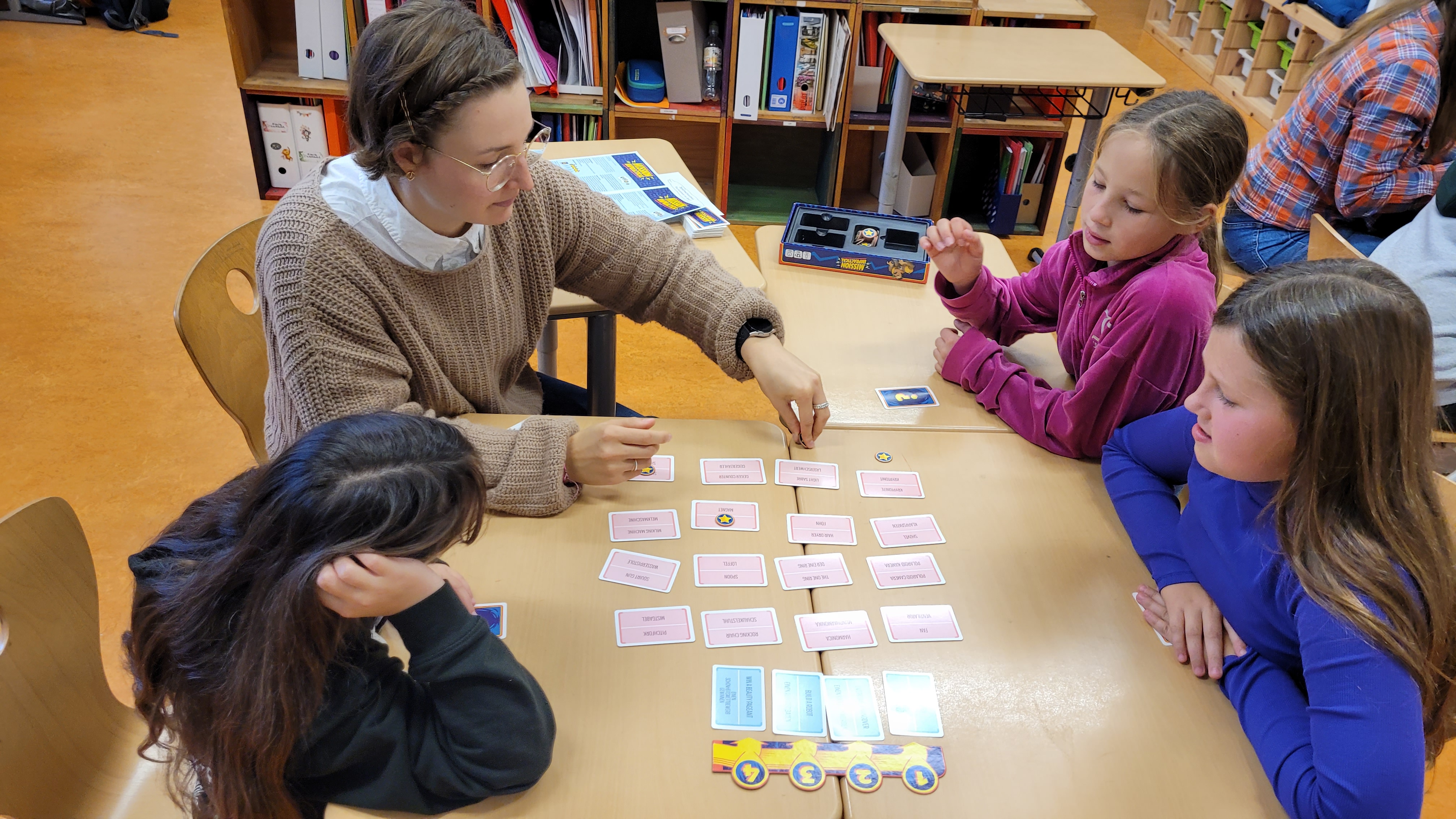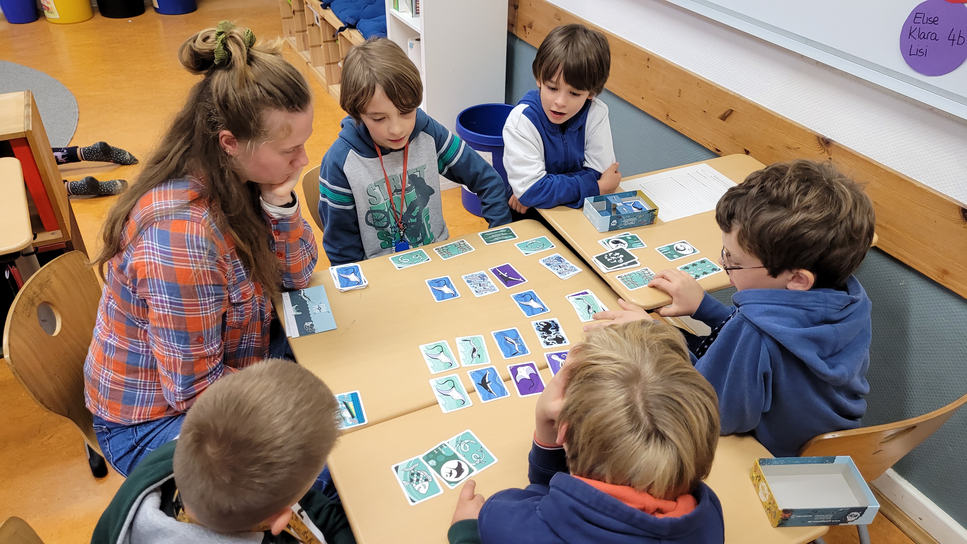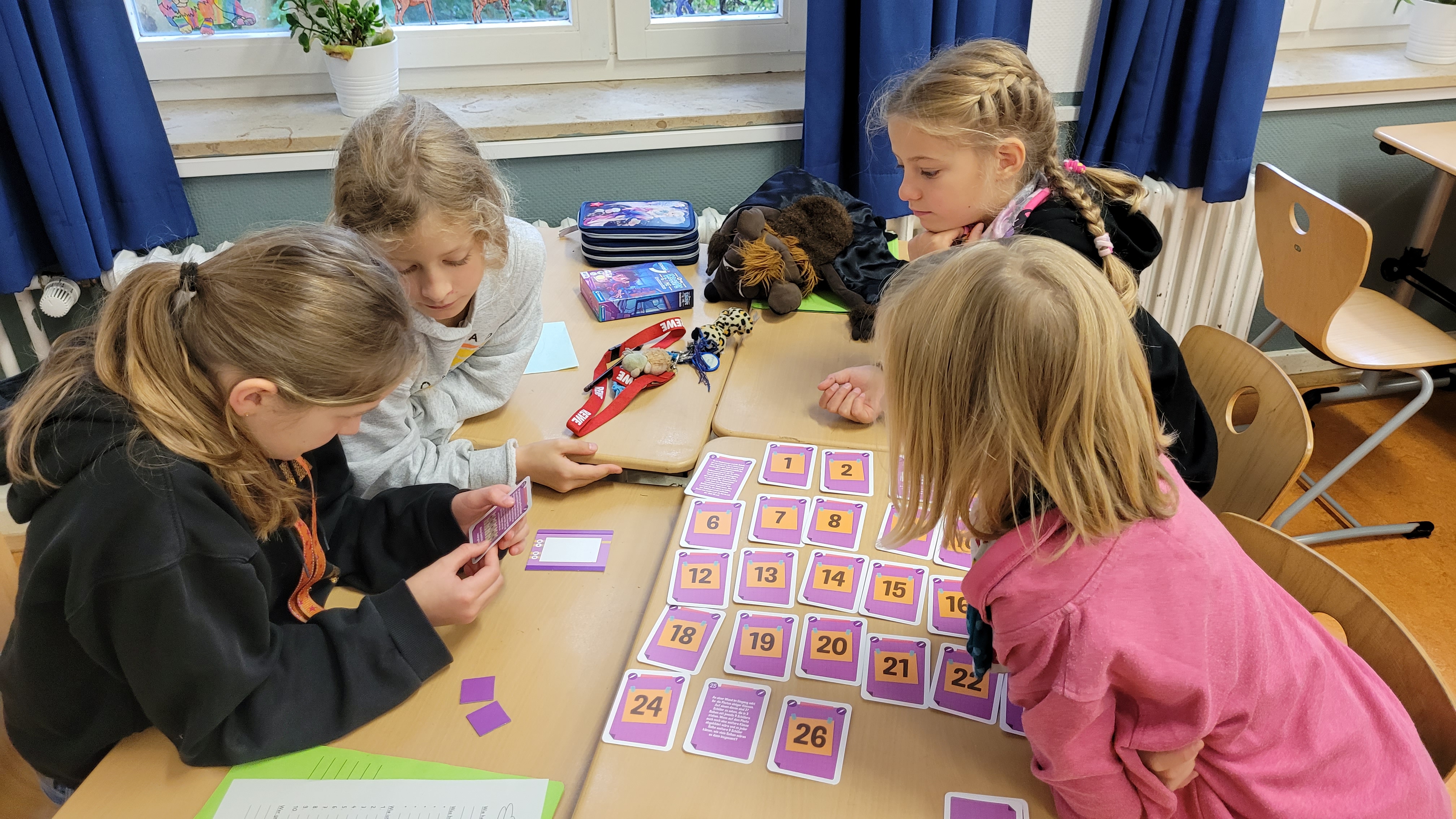 In den ersten Unterrichtsstunden der Lern-AGs haben sich die Kinder und das Projektteam kennengelernt. Gemeinsam haben sie die ersten Grundlagen u.a. zu Fairtrade, Bio-Siegeln, dem Weg der Lebensmittel und zum Mindesthaltbarkeitsdatum erkundet. Zu alledem wollen sie im Laufe des Projektes "Bewusster, nachhaltiger Konsum in der Grundschule" ein eigenes Lernspiel kreieren. Ein Highlight auf diesem Weg hat bereits stattgefunden: die Schüler:innen durften die Spieleentwickler von Gaiagames zu ihrem Job und zur Spieleentwicklung interviewen. Ganz oben auf der Frageliste: "Macht Spieleentwickeln immer Spaß?". Meistens, so hieß es. Denn Spieleentwicklung ist ein komplexes Feld, bei dem Kurzweiligkeit, Spielregeln, Lerninhalt und vieles weitere Hand in Hand gehen müssen. Mit den Antworten auf viele interessierte Fragen der Schüler:innen sind sie nun selbst gefragt, denn nun sind sie an der Reihe: Mit spannendem Input zu Nachhaltigkeit im täglichen Konsumieren verknüpfen sie Erlerntes mit allem, was es für ein gutes Spiel braucht.